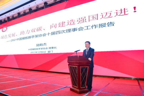 陸貽杰作了“綠色發(fā)展、助力雙碳,向模架強(qiáng)國(guó)邁進(jìn)”的工作報(bào)告。系統(tǒng)總結(jié)了2021年協(xié)會(huì)主要工作,深入開展各項(xiàng)會(huì)員服務(wù),在推動(dòng)行業(yè)科技技術(shù)進(jìn)步,促進(jìn)行業(yè)高質(zhì)量發(fā)展取得卓有成效成果!笆奈濉泵媾R新的機(jī)遇,產(chǎn)業(yè)迎來巨大的發(fā)展空間。綠色發(fā)展,未雨綢繆,實(shí)現(xiàn)建造過程“節(jié)能環(huán)保、提高效率、提升品質(zhì)、保障安全”,需要持之以恒的努力。