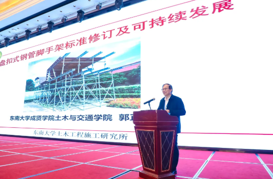 東南大學(xué)郭正興教授是盤扣標(biāo)準(zhǔn)主編,詳細(xì)解讀了盤扣式鋼管腳手架及標(biāo)準(zhǔn)修訂,盤扣式鋼管腳手架現(xiàn)場(chǎng)安全檢查要點(diǎn),盤扣式鋼管腳手架工程應(yīng)用技術(shù)創(chuàng)新等專題,結(jié)合工程實(shí)例為大家進(jìn)行了透徹的講解和宣貫。