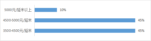 6、爬架銷售價格受影響較大受鋼材波動、產(chǎn)品智能化升級、不同的銷售條件、產(chǎn)品質(zhì)量等多因素影響,爬架銷售價格浮動明顯。企業(yè)銷售價格在3500-4500元/延米區(qū)間占45%,4500-5000元/延米占45%,5000元/延米以上占10%。