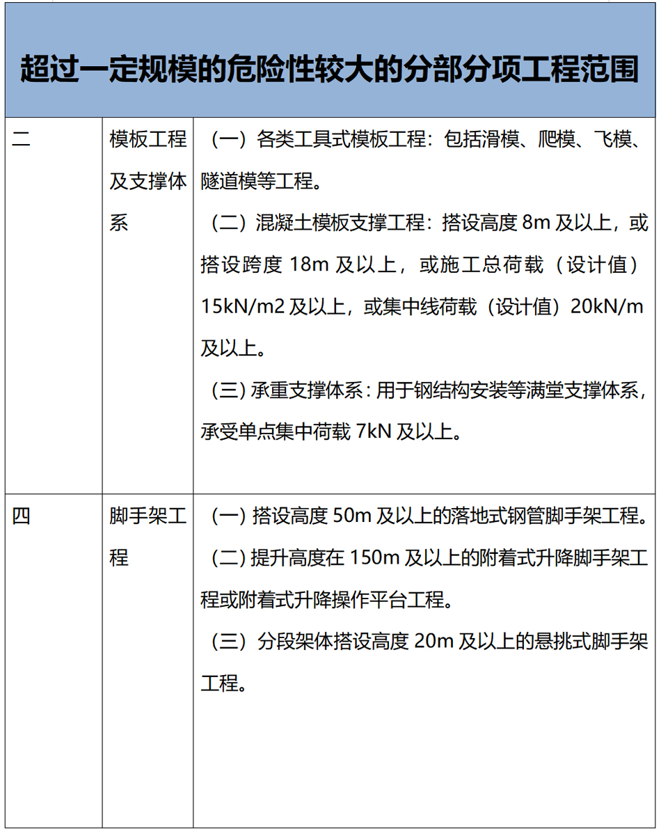2018年5月,住房城鄉(xiāng)建設(shè)部辦公廳發(fā)布“關(guān)于實(shí)施《危險(xiǎn)性較大的分部分項(xiàng)工程安全管理規(guī)定》有關(guān)問題的通知”明確危大工程范圍。
