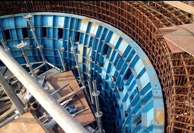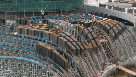 全鋼異型空間拱殼模板施工現(xiàn)場(chǎng)